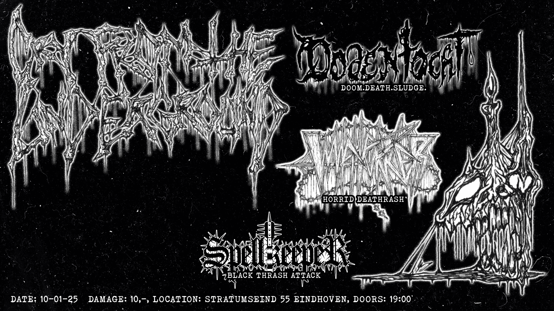 On Saturday 10 January Cafe The Jack becomes a pressure chamber for sludge, death, doom and black metal. No polish. No mercy. Just volume, sweat and riffs carved from rot and fire. Cry From The Underground is a night for those who live below the surface and like it that way.